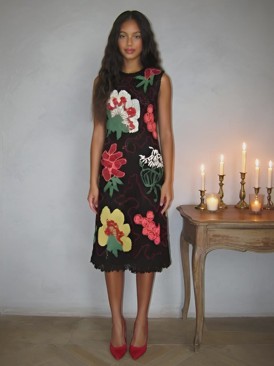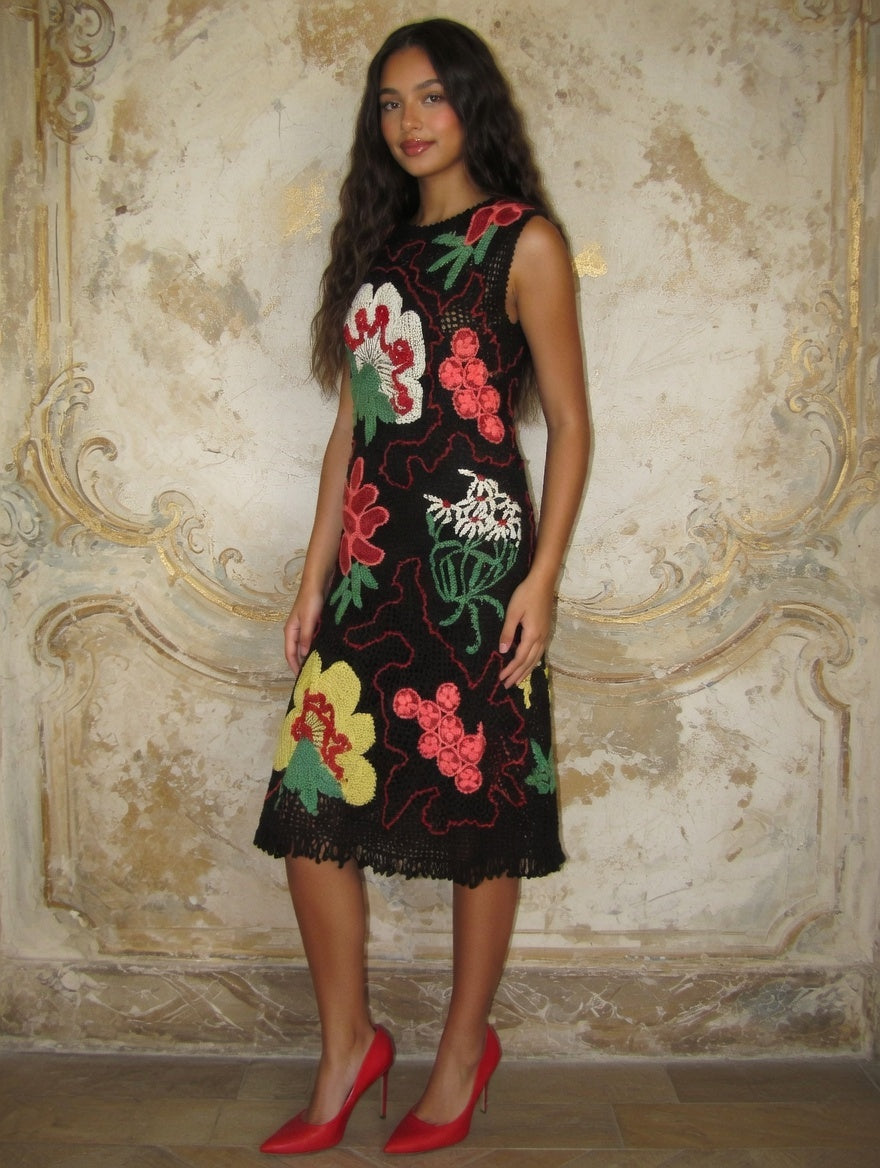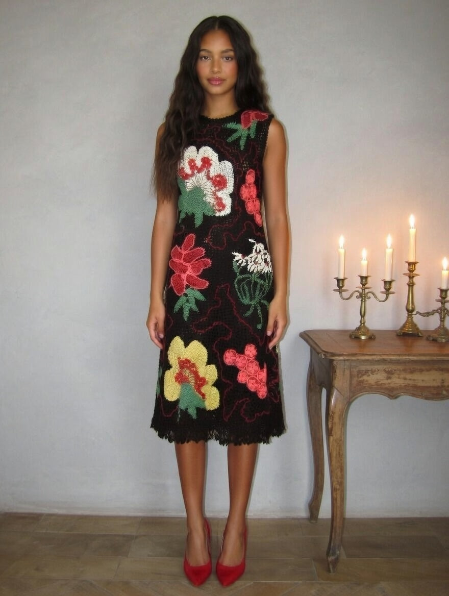 The sleeveless silhouette and elegant midi length below the knee make this crochet dress versatile and refined. It can be worn for evening events, theater visits, special occasions, vacations, art events, or stylish summer outings.