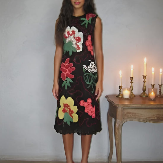 Black Irish Lace Crochet Dress Handmade Floral Lace Dress Sleeveless Boho Midi Dress Artisan Crochet Evening Dress