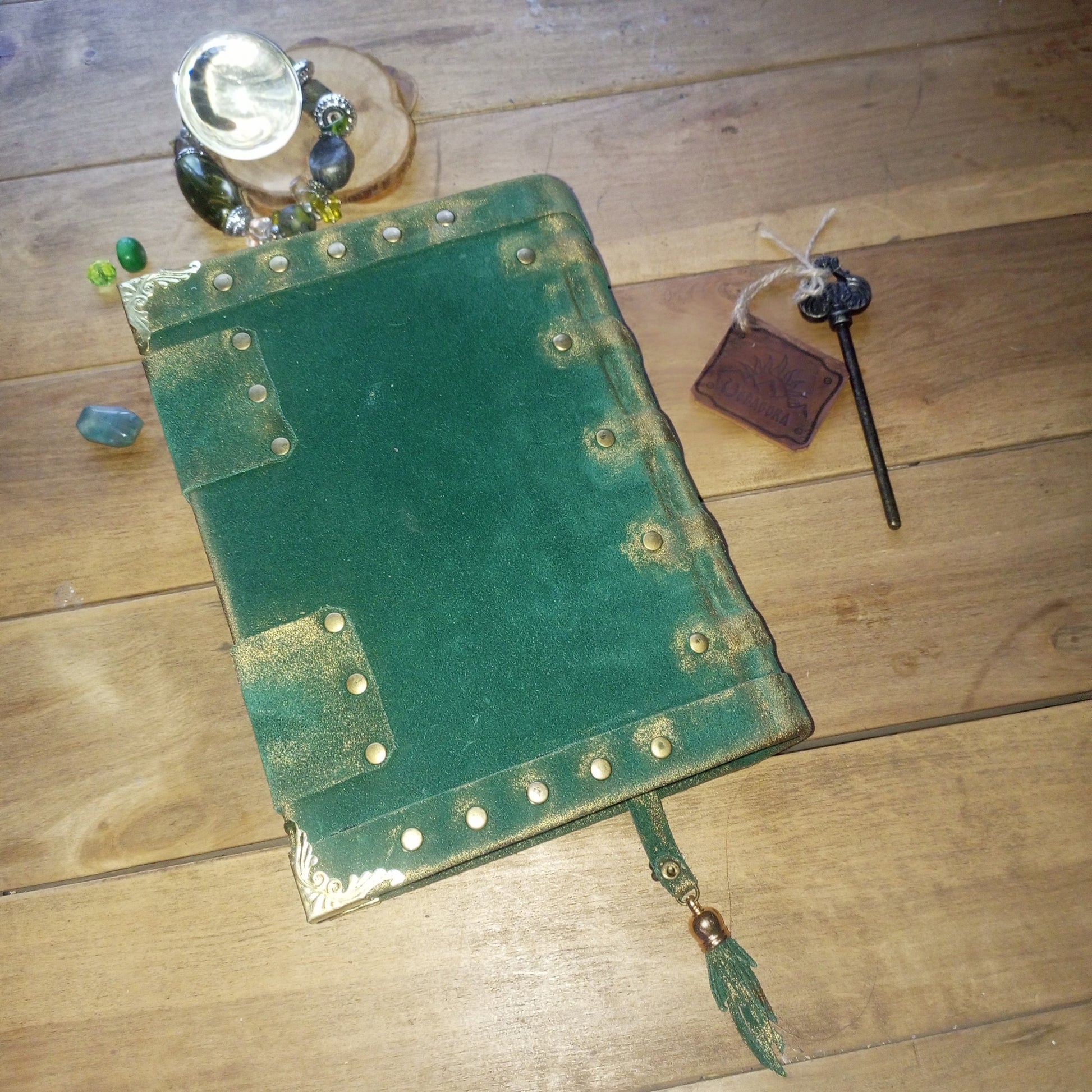 Discover this one-of-a-kind handmade leather journal crafted from natural emerald green suede leather. This vintage-inspired notebook is fully handmade and designed to look authentically aged and mystical.