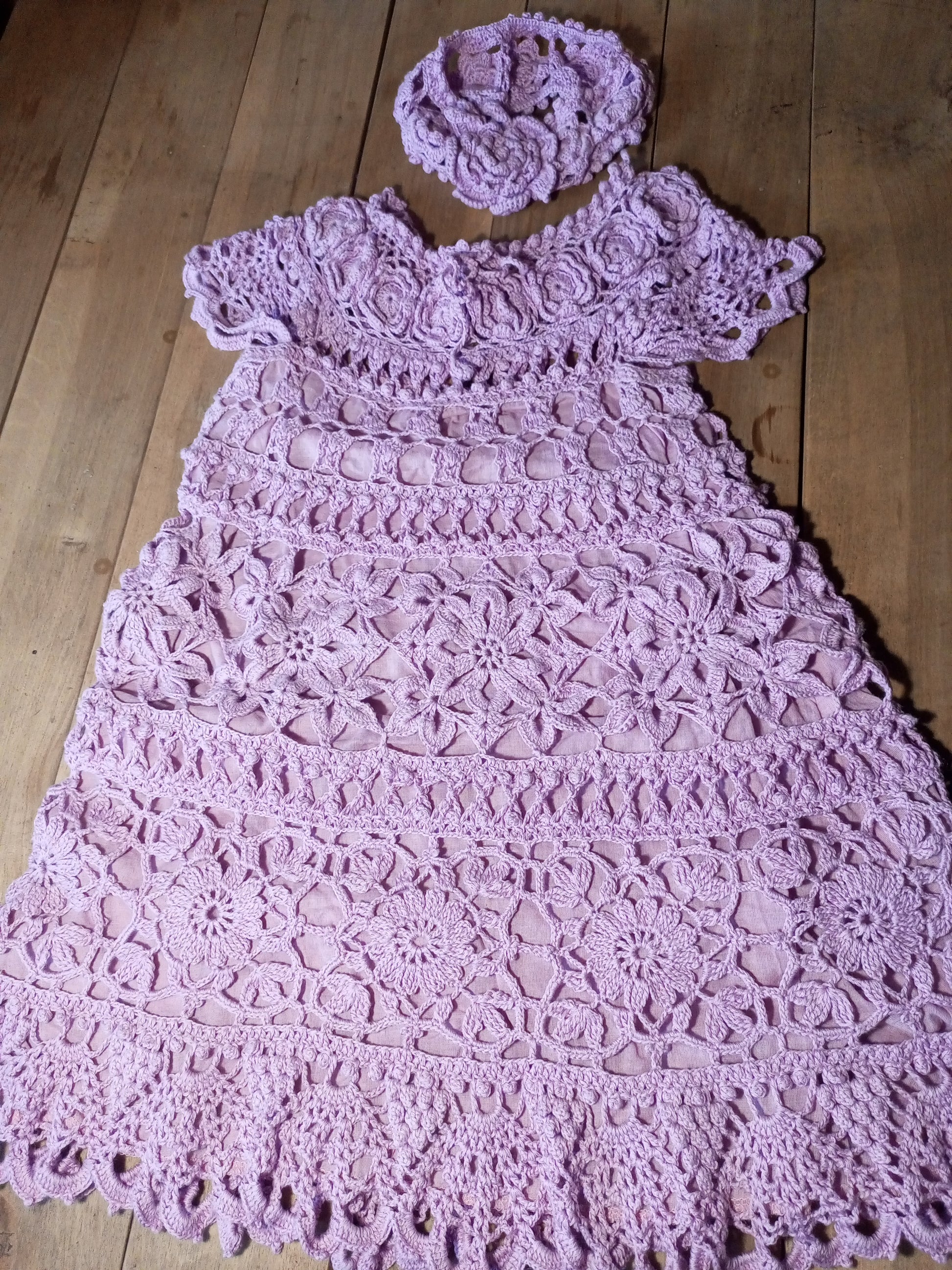 Handmade Pink Crochet Dress for Girls with Floral Lace Baptism Girl Dress