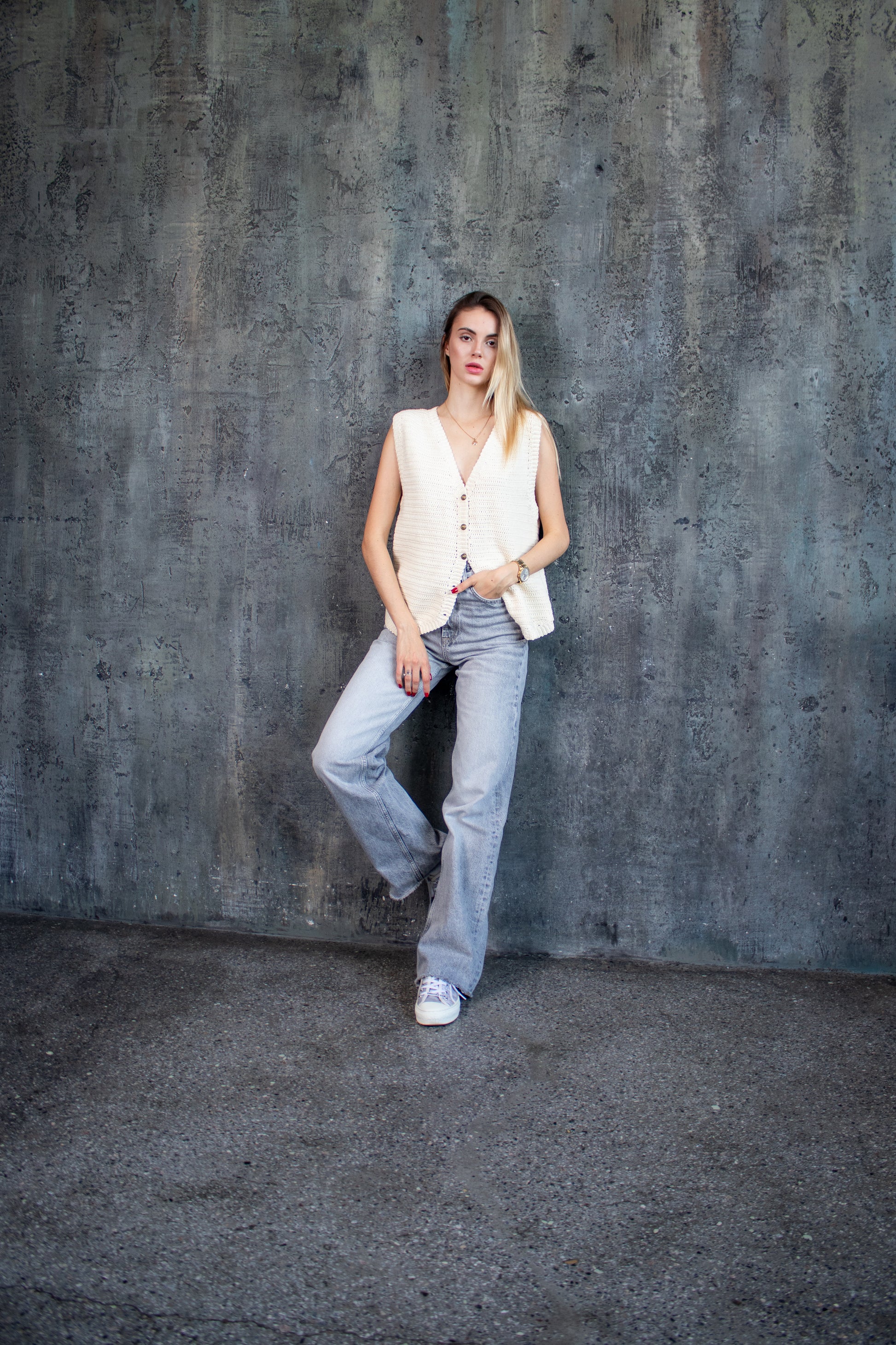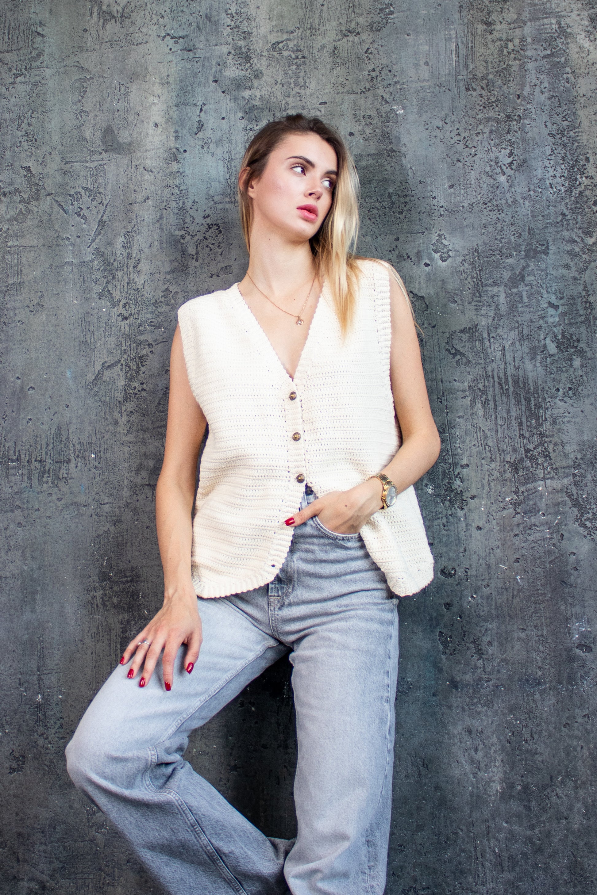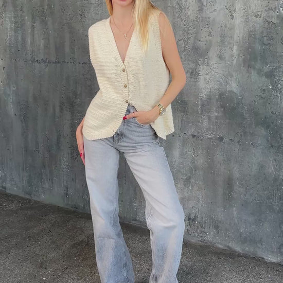 Ivory Crochet Summer Vest – Handmade Boho Cotton Knit Waistcoat