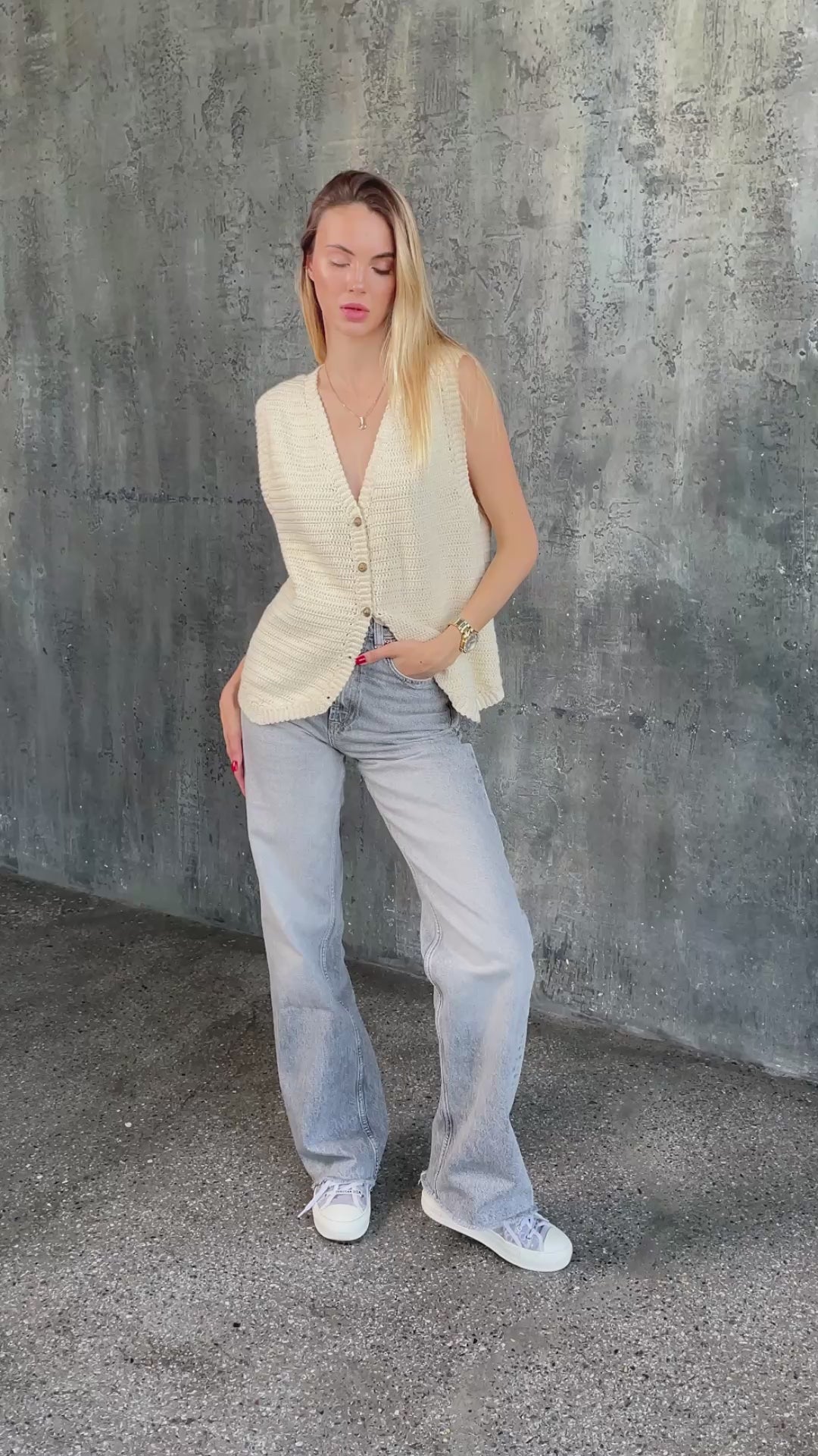 This ivory crochet summer vest is a lightweight handmade piece designed to add elegance and individuality to your summer wardrobe.