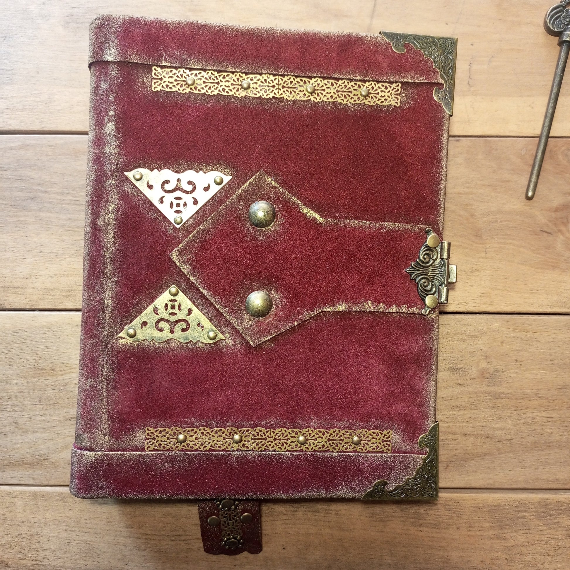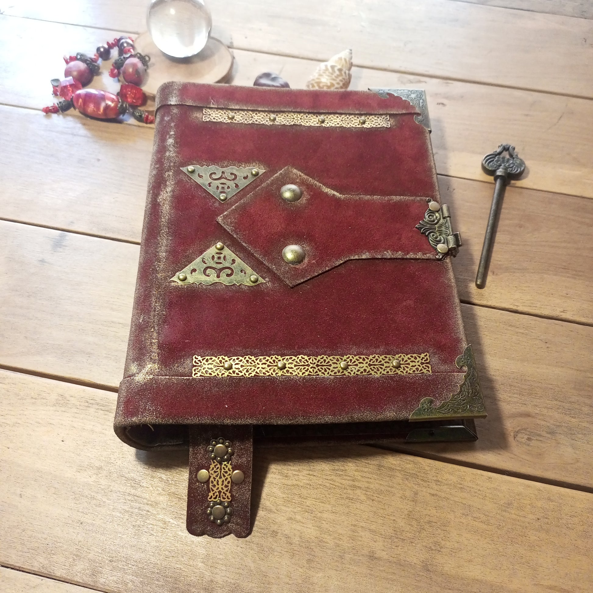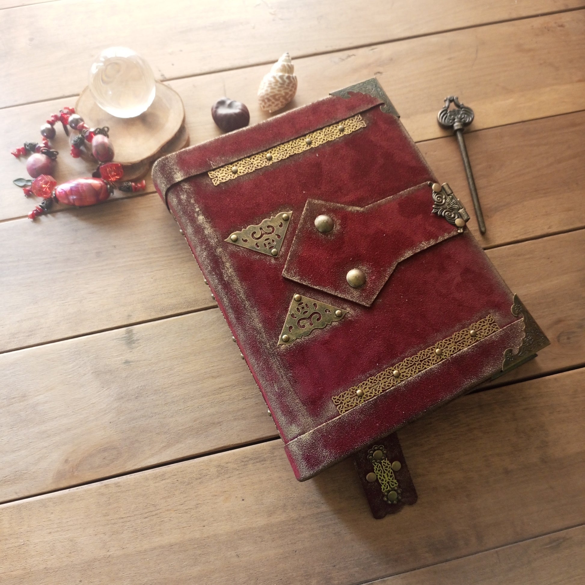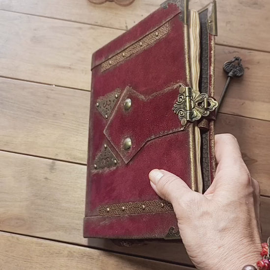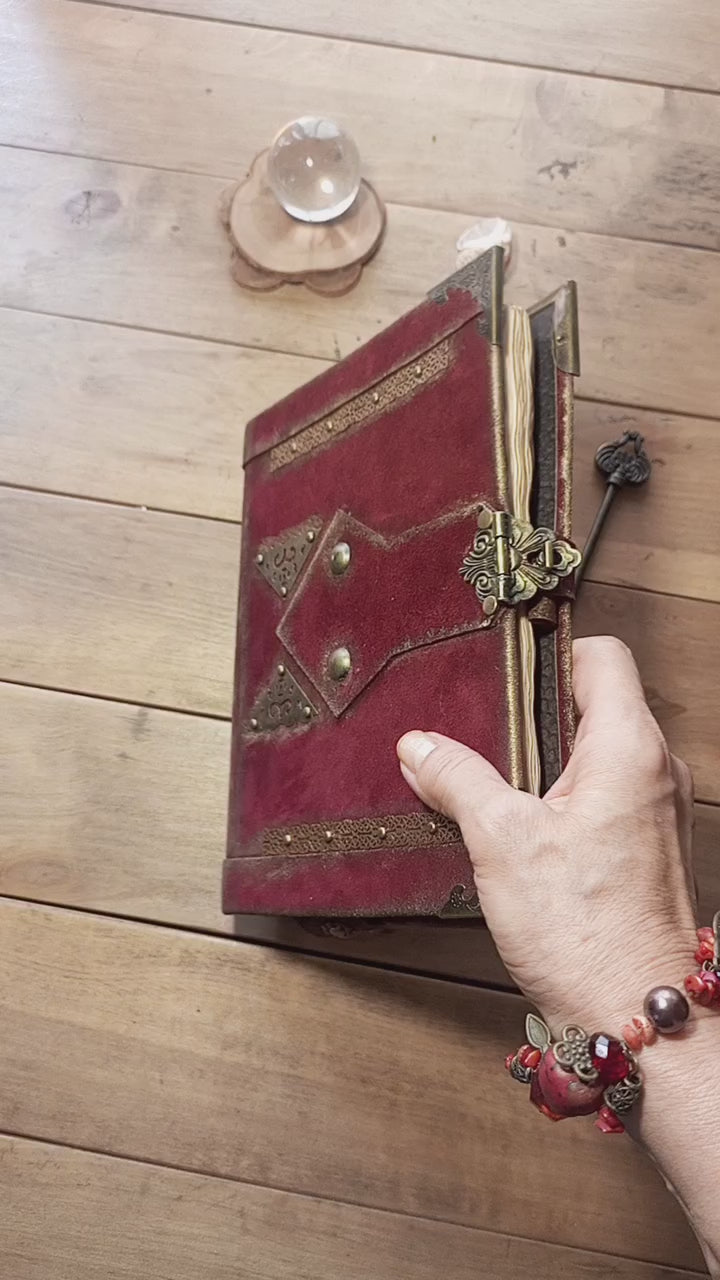 Red Suede Grimoire – Handmade Leather Journal with Antique Lock