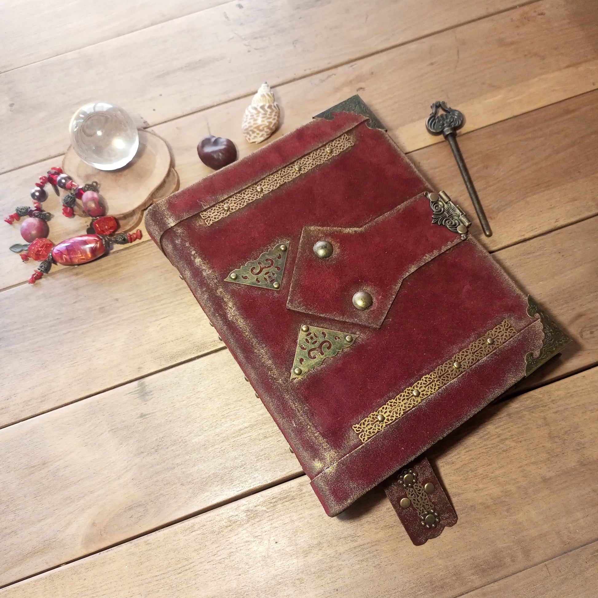 This blood red suede journal makes a striking gift for writers, artists, witches, fantasy lovers, and collectors of artisan leather goods.