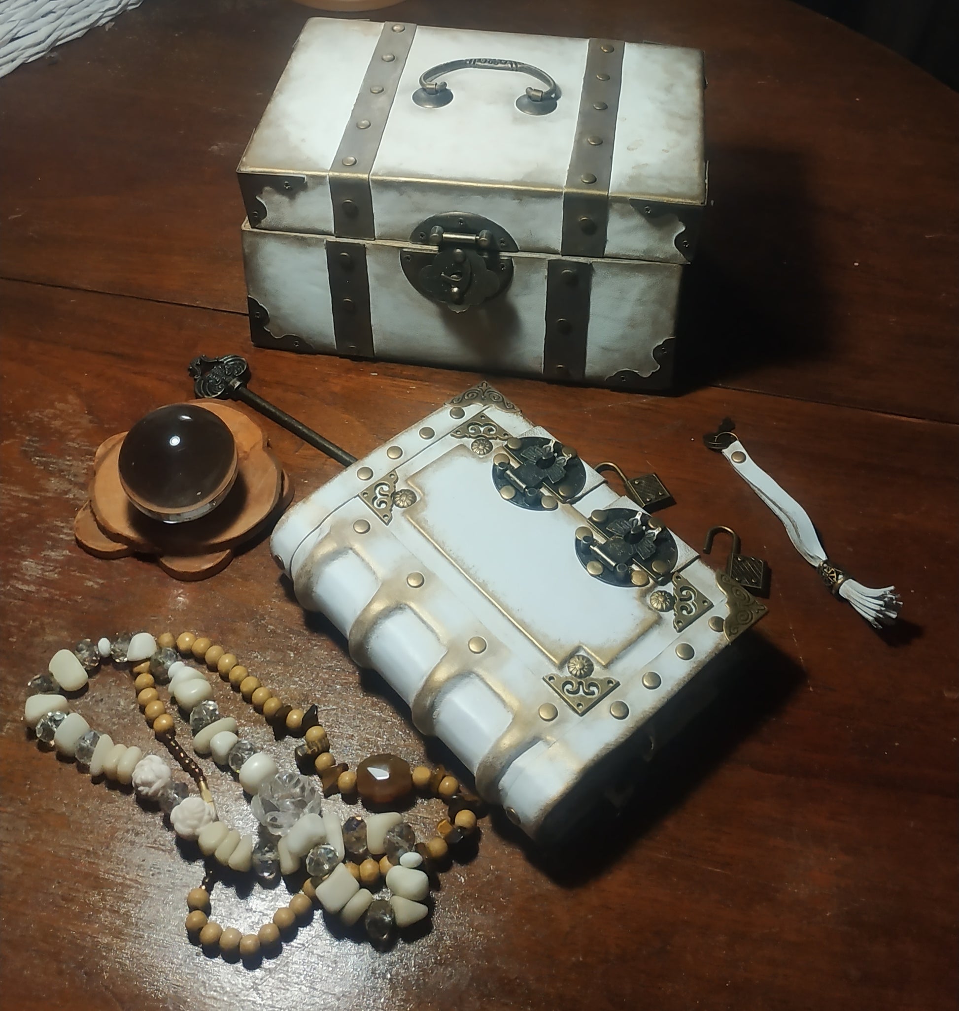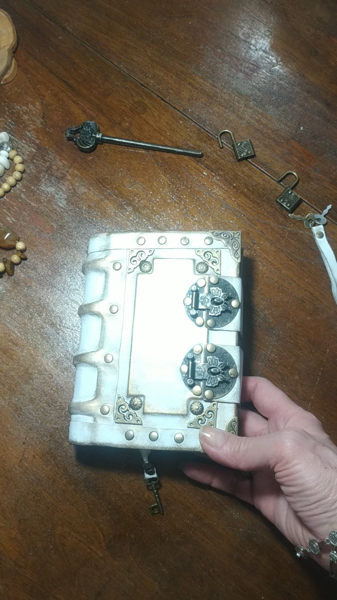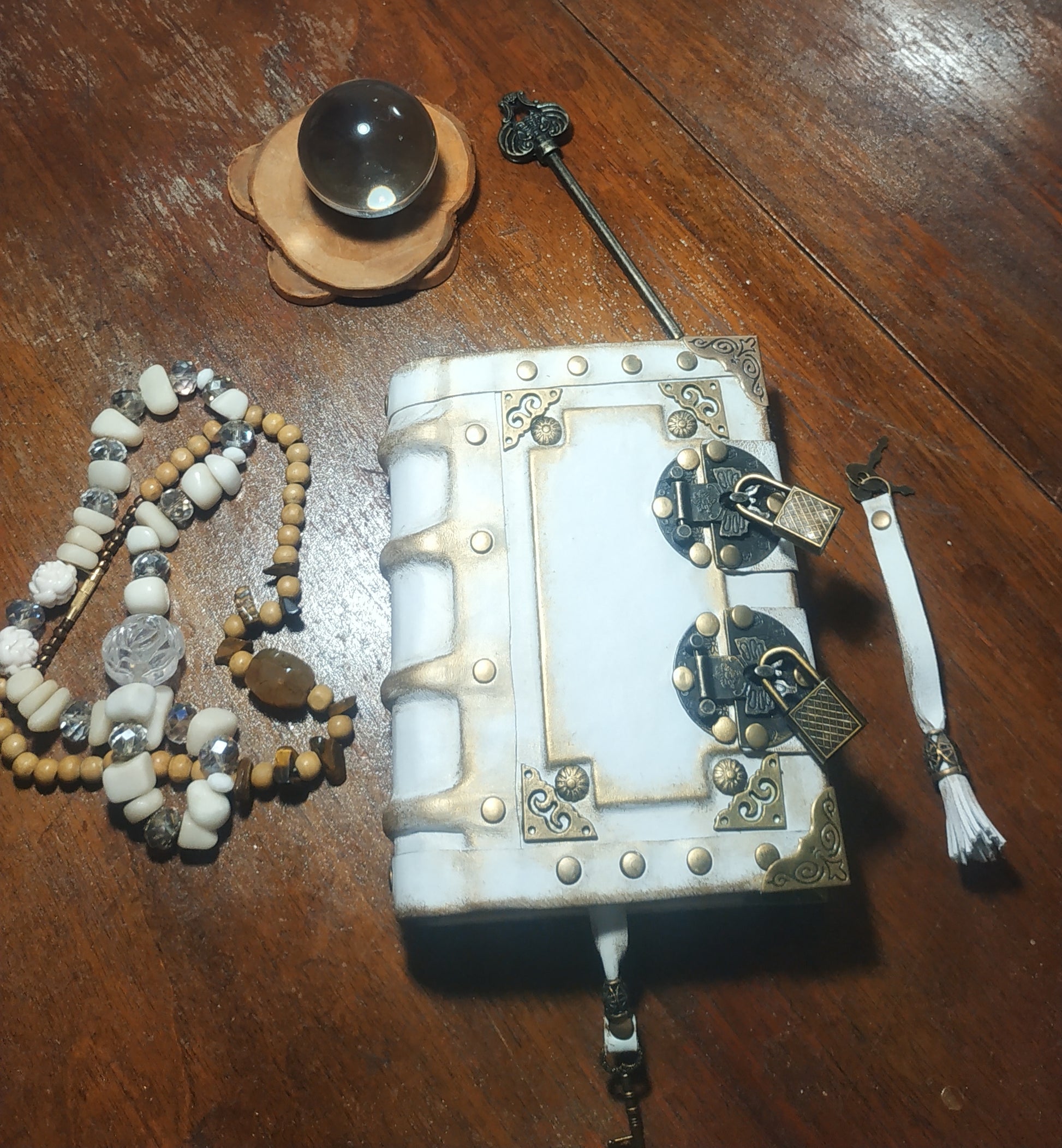 White Aged Leather Journal with Antique Locks – Medieval Wicca Grimoire Handmade Blank Vintage Notebook, 200 Pages